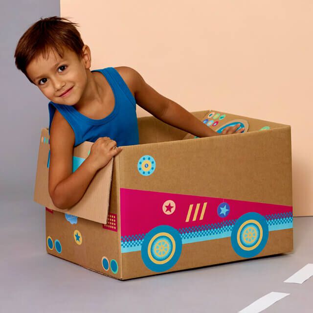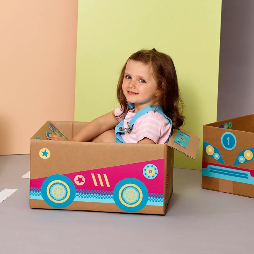 Ustvari svoj prvi avto iz kartonske škatle z zabavnimi nalepkami ReBoxy!